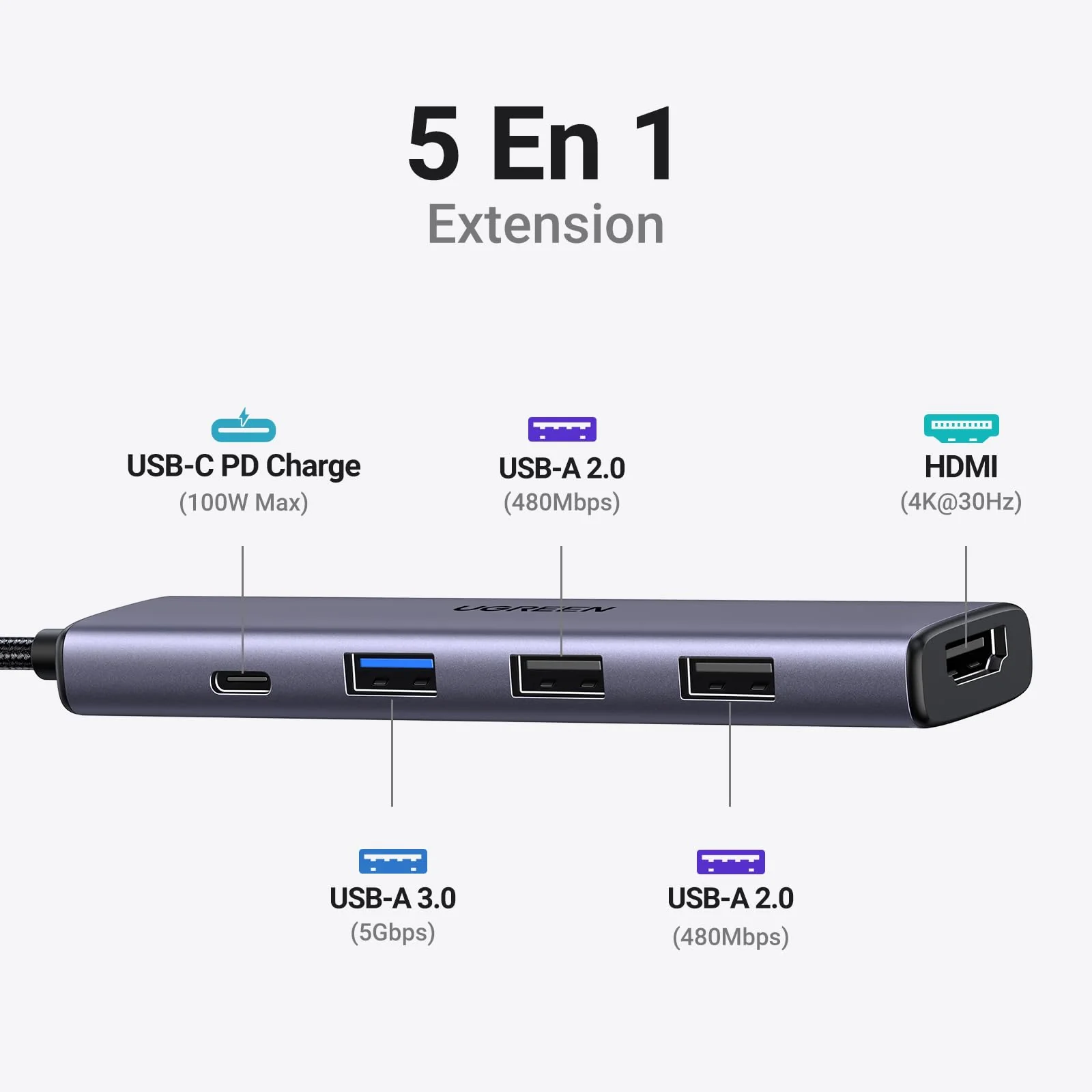 -70%UGREEN Revodok Hub USB C HDMI 4K avec PD Charge 100W Aliment—