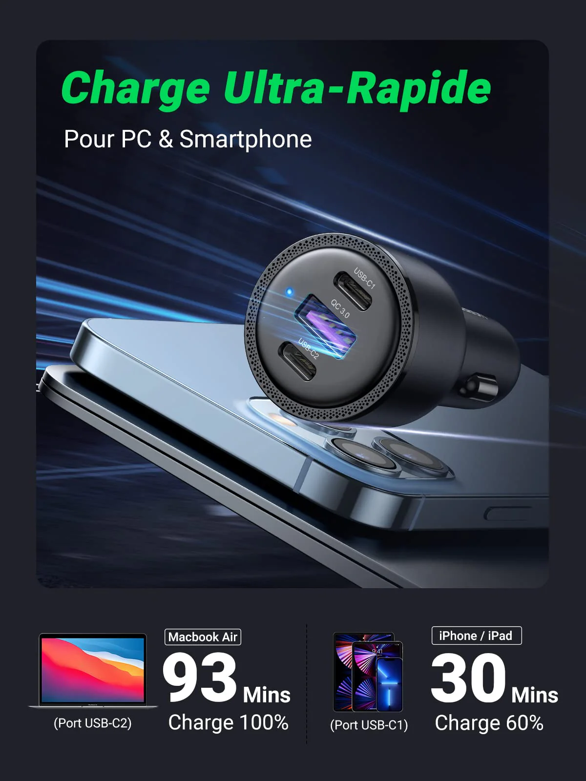 UGREEN 69W Chargeur Voiture USB C Rapide PD QC 3.0